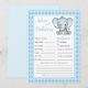 Blue white stars pattern, Elephant Baby Advice and Prediction card. Add your predictions about the new baby and leave your best wishes.