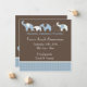 This blue elephant baby announcement has five elephants in blue and white with background of brown. You can easily change wording and add to the back if you wish.