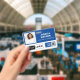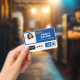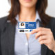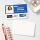 Blue Employee Name Badge with Logo and QR Code