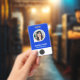 Blue Employee Photo ID Card, Bar Code, Logo, Name Badge