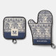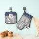 Blue Ethnic Elephant Pattern Oven Mitt & Pot Holder Set