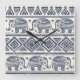 Blue Ethnic Elephant Pattern Square Wall Clock