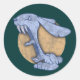 Angry, blue, cartoon bunny rabbit with wide open mouth with long fangs, on a gold circle, heavily age distressed. T-shirts, gifts.