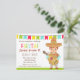 Celebrate a kids birthday with a colourful Mexican Fiesta! This invitation is perfect with its bright choice of colours like red, blue, green and yellow. It features a boy dressed in fun and colourful Mexican themed clothing , a Sombrero wide-brimmed hat and a poncho that are in interesting stripy pattern. The boy has a guitar strapped around his neck. Bunting banner hangs in the background. Reverse page is a guitar. Guests are going to look forward to the music, food and drinks and a fun day!