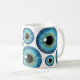 Blue Eye Iris © Sunny Mars Designs. Cool, amusant imprimé bleu eyeball classique mug avec une tendance, moderne, belle, unique, monstrueux, déplaisant, bizarre et tordu illustration graphique d'un grand bleu réaliste eyeball iris d'un oeil. D'autres modèles de lunettes de couleur sont également disponibles en magasin.