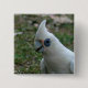 This odd bird from Australia is called a blue eyed cockatoo. It's a white bird with a crest on its head that makes it look a bit like a unicorn! It's a member of the parrot family and has a light to medium blue bare circle around its eyes, giving it a really unique and almost cartoonish look.