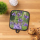 For nature and dragonfly fans! Safely handle baking trays, cookie sheets and muffin tins from the oven with this pot holder with black trim that features the photo image of a Blue-eyed Darner dragonfly resting on purple Aconite flowers. Select your pot holder backing style.