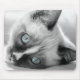 Mouse pad featuring a cute blue-eyed white kitten with a white stripe down his nose. Photo taken in Pasadena, California.