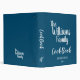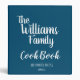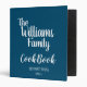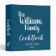 Create a cool, modern and personalized blue cook book with your own family name written in a script font style.
