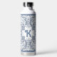 Blue Fancy Floral Pattern Personalized Water Bottle