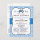 It's a boy! Cute, elegant farm tractor, country theme baby shower invite on blue gingham pattern with vintage formal look. Great for farmer, country theme baby showers. Retro bracket shape invitation.