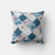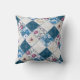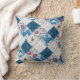Blue fashionable rustic pattern of fabric scraps throw pillow