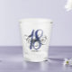 Modern, chic 18th birthday shot glass features number 18 in blue faux glitter texture, calligraphy script eighteen. Personalize with a name. Perfect as a gift for 18th birthday.