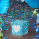 A modern, trendy and girly design featuring faux sparkling blue glitter sequin background that appears to sparkle and shine.