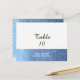 Dreamy blue faux glitter background accents this table seating card. Customize by changing the number and adding to cart, then repeat for each number.