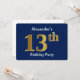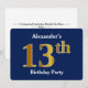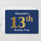 Blue, Faux Gold 13th Birthday Party + Custom Name Invitation