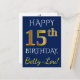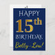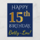 Blue, Faux Gold 15th Birthday + Custom Name Postcard