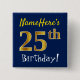 Blue, Faux Gold 25th Birthday, With Custom Name 2 Inch Square Button