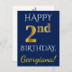 Blue, Faux Gold 2nd Birthday + Custom Name Postcard