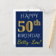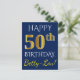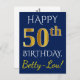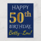 Blue, Faux Gold 50th Birthday + Custom Name Postcard