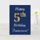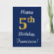 Blue, Faux Gold 5th Birthday + Custom Name Card