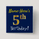 Blue, Faux Gold 5th Birthday, With Custom Name 2 Inch Square Button