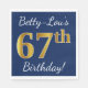 Blue, Faux Gold 67th Birthday + Custom Name Napkin