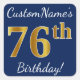 Blue, Faux Gold 76th Birthday + Custom Name Square Sticker