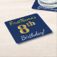 Blue, Faux Gold 8th Birthday + Custom Name Square Paper Coaster