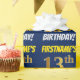This wrapping paper design features a message like "FIRSTNAME’S 13th BIRTHDAY!", with the "13th" having a faux/imitation gold-like colour appearance, and with the name and "BIRTHDAY" in a fun, bold font. The name can be customized, and the background is coloured blue. Wrapping paper like this could perhaps be used when wrapping birthday gifts being given to somebody in celebration of their thirteenth birthday. [~Z0000209]