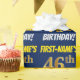 This wrapping paper design features a message like "FIRST-NAME’S 46th BIRTHDAY!", with the "46th" having a faux/imitation gold-like colour appearance, and with the name and "BIRTHDAY" in a fun, bold font. The name is customizable, and the background is coloured blue. Wrapping paper like this could perhaps be used when wrapping birthday gifts being given to somebody in celebration of their forty sixth birthday. [~Z0000209]