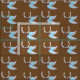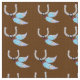 Fabric with a tiled artwork of a Horseshoe and Blue Feathers with a brown background.