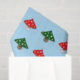 A pattern of festive cartoon mushrooms. One has a cap like a Christmas tree and the other has a cap like a Santa hat. The background is ice blue.