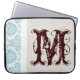 Blue Filigree Damask White Grey Swirly Design Paper Texture Paper-Texture Monogram Initial 15" Laptop Case Bag Personalized
