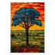 Under a blazing sky, a tree with turquoise-blue leaves stands majestically against a golden landscape. A vibrant, surreal artwork radiating strength, magic, and untamed nature—perfect for transforming any space with energy and bold colour.