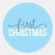 Blue "First Christmas" Modern for New Parents Classic Round Sticker