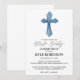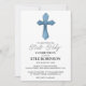 Celebrate your child's special day with these stylish and sophisticated first communion invitations. Featuring a beautiful navy blue watercolor background, a delicate cross design, and a touch of gold foil, these invitations are perfect for a modern, elegant celebration. The design is customizable to match your event's theme and colour palette.