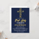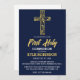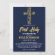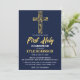 Celebrate your child's special day with these stylish and sophisticated first communion invitations. Featuring a beautiful navy blue watercolor background, a delicate cross design, and a touch of gold foil, these invitations are perfect for a modern, elegant celebration. The design is customizable to match your event's theme and colour palette.