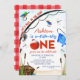 Blue Fish Boat Ofishally One 1st Birthday Invitation