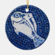 Cute and artsy fish mosaic round ornament. Great photograph of a blue mosaic fish on a yellow brick background. Great gift for those who like fishing or who enjoy mosaic art. Makes a great memorabilia for fishermen. Design available on various items.