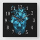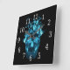 Blue Flaming Skull Square Clock