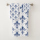 Blue fleur-de-lis seamless pattern on white bath towel set