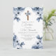 Blue floral first communion invitation in spanish for boy.