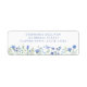 This floral bridal shower return address label is decorated with blue watercolor wildflowers and stylish typography.