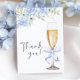 Blue Floral Bridal Shower Thank You Card with a cute champagne glass and blue bow