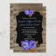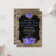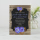 Blue floral, chalkboard rustic brown wood wedding invitation