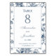 Blue Floral Chinoiserie Christian Wedding Table Number