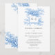 Blue Floral Chinoiserie Classing Monogram Elegant Invitation