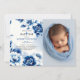 Blue floral Chinoiserie, watercolor Baptism photo Invitation