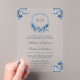 Blue Floral Crest Monogram Wedding Acrylic Invitations